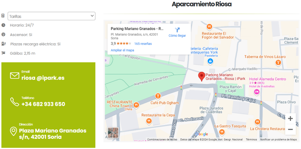 Si quieres dejar el coche en un parking, existe uno a solo 100 metros del piso. Es amplio, práctico y vigilado, situado en el centro de la ciudad, con una salida al lado de las calles peatonales. Las entradas y salidas son cómodas y las plazas no son estrechas como en muchos otros. Tiene cargadores para coches eléctricos de 3,5 w (enchufes normales) y 7 w (carga más rápida).